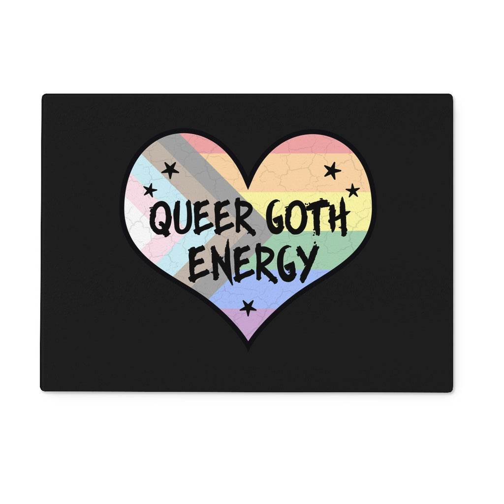 Queer Goth Energy LGBTQ Punk Pride Heart Glass Chopping Board