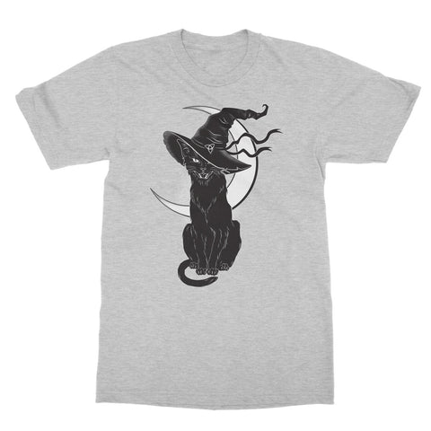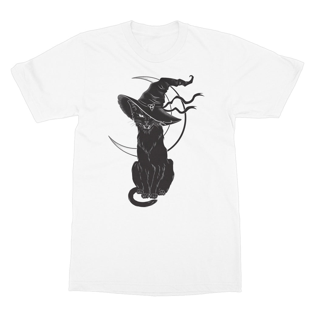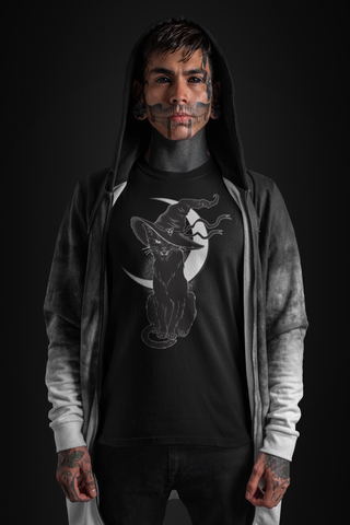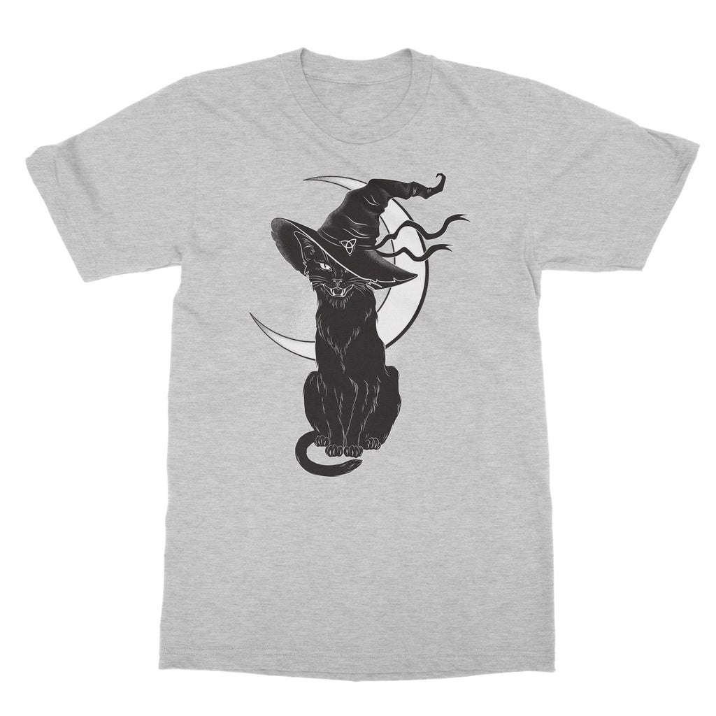 Black Witches Cat Hissing In Hat Crescent Moon T-Shirt
