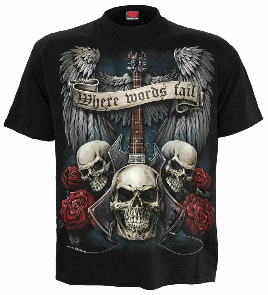 Spiral Direct Unspoken Guitar Where Words Fail Biker Skull Rock Tattoo T-shirt! |