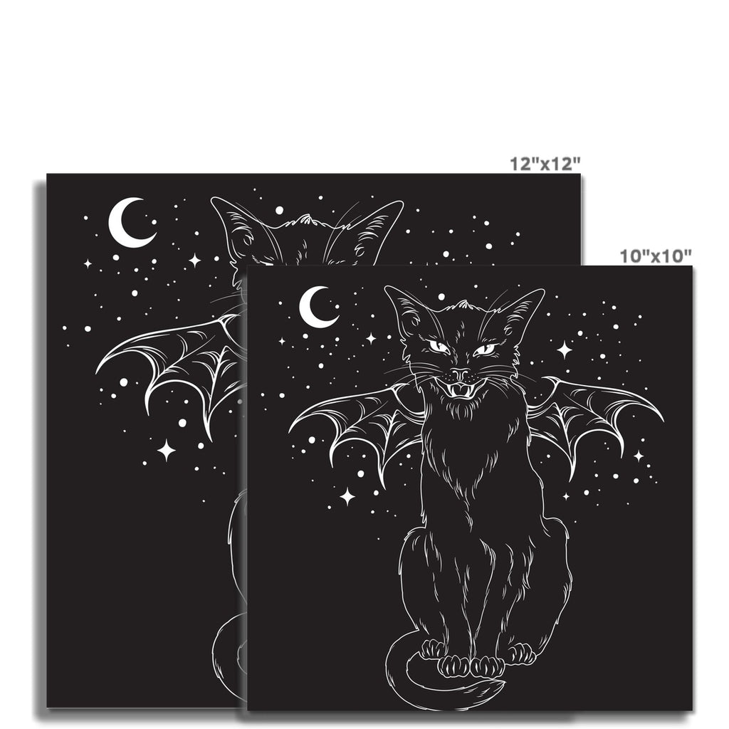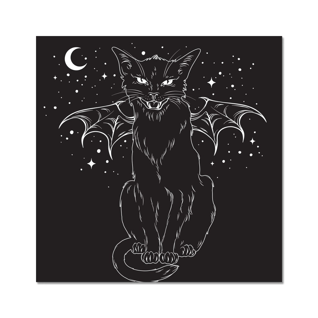Black Bat Wing Witches Cat Hissing Night Sky Fine Art Print
