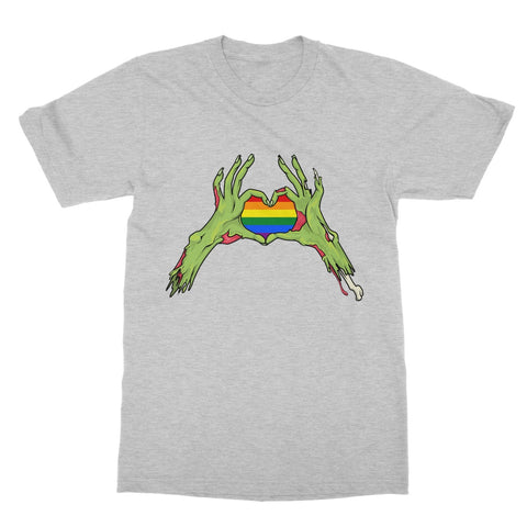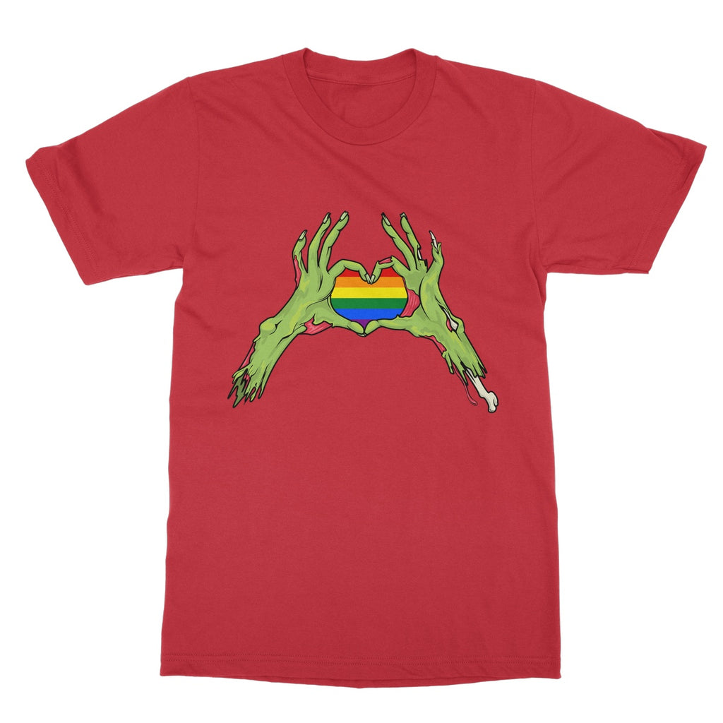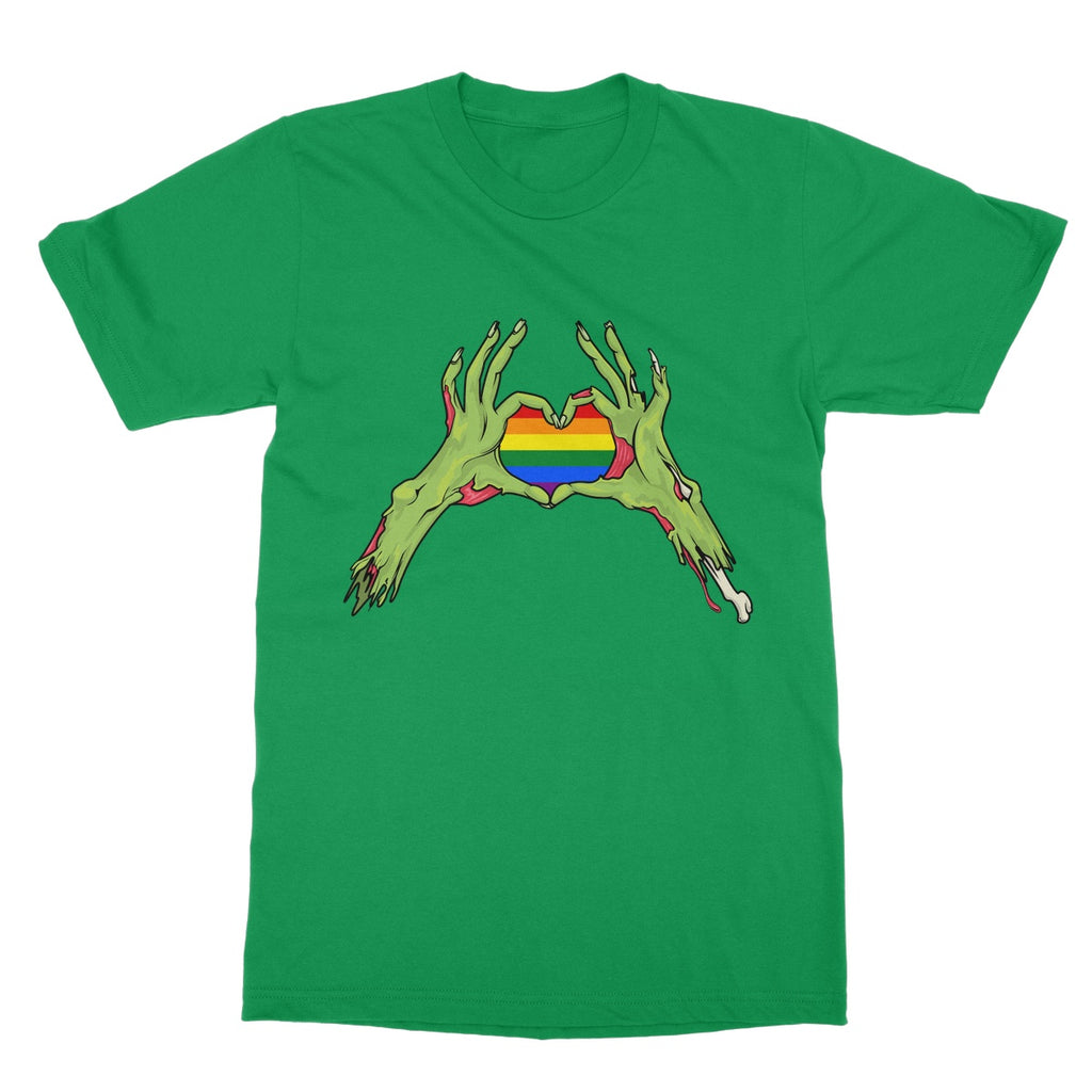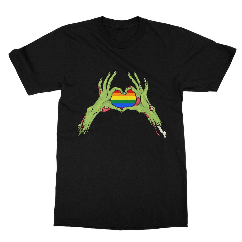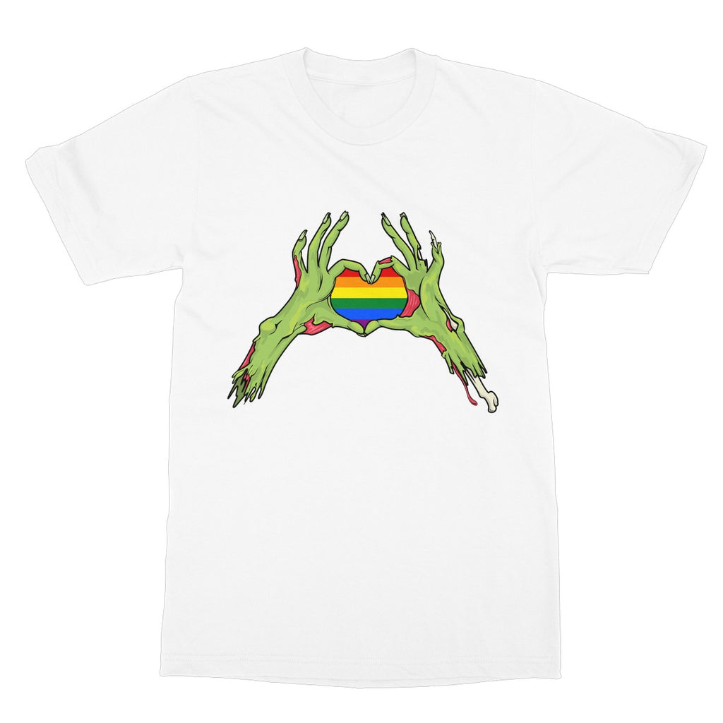 Zombie LGBTQ Heart Hands Pride Flag Softstyle T-Shirt
