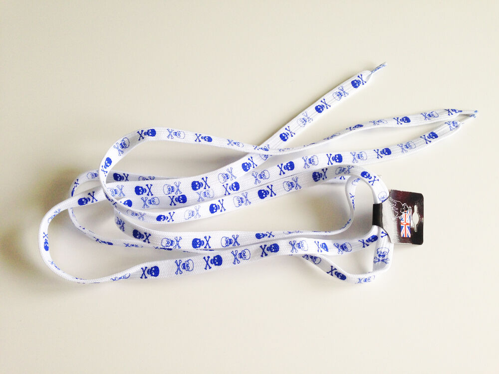 White Shoelaces With Blue Skull Print Design Flat Shoe laces ! |