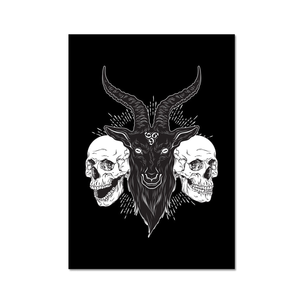 Baphomet 666 Goat Skulls Black Fine Art Print
